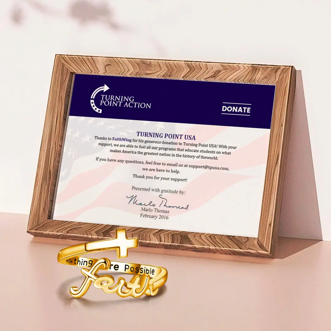 With every purchase from FaithWing, you are not only spreading hope and the love of Christ but also supporting a cause close to our hearts: upholding Charlie Kirk’s legacy. Your support helps fund Turning Point USA, advancing his mission of faith, freedom, and family.